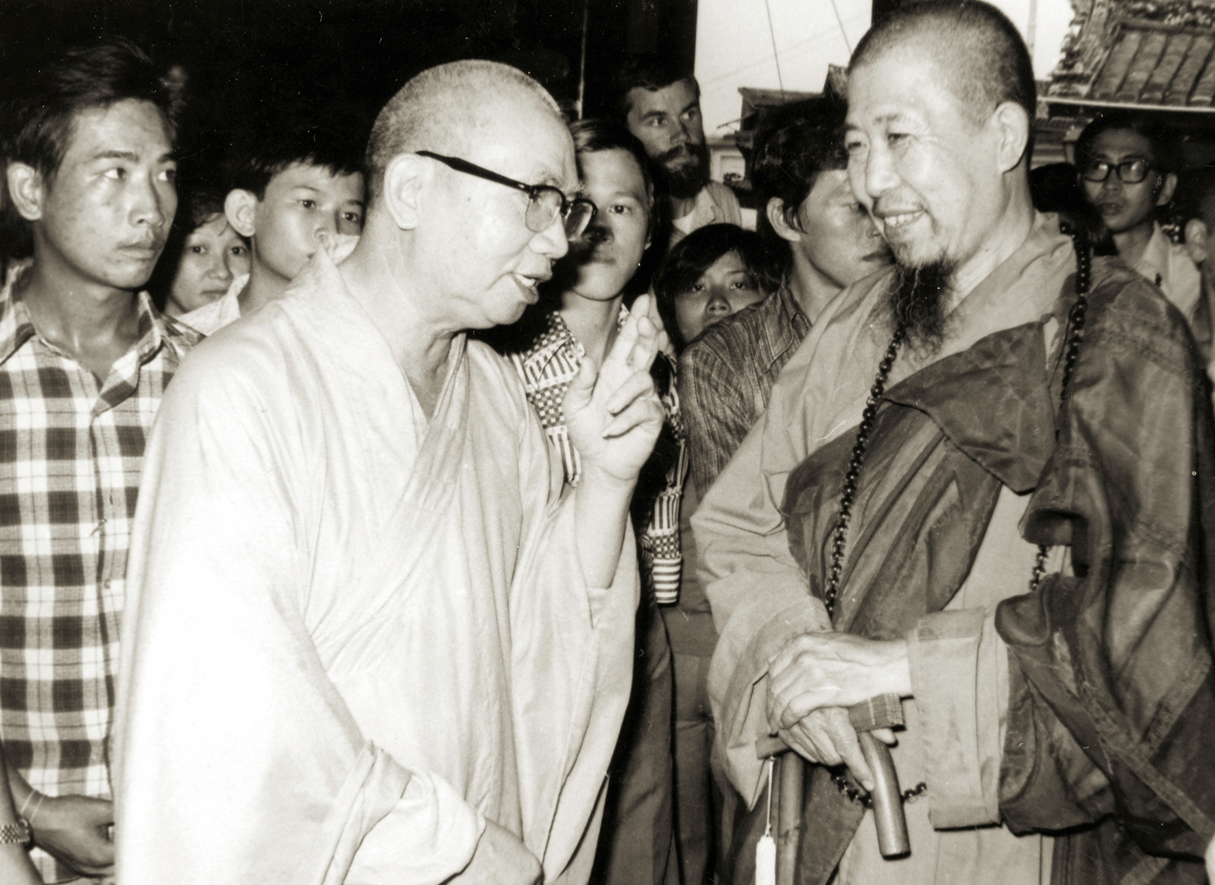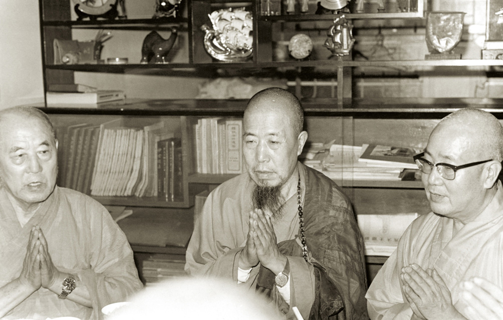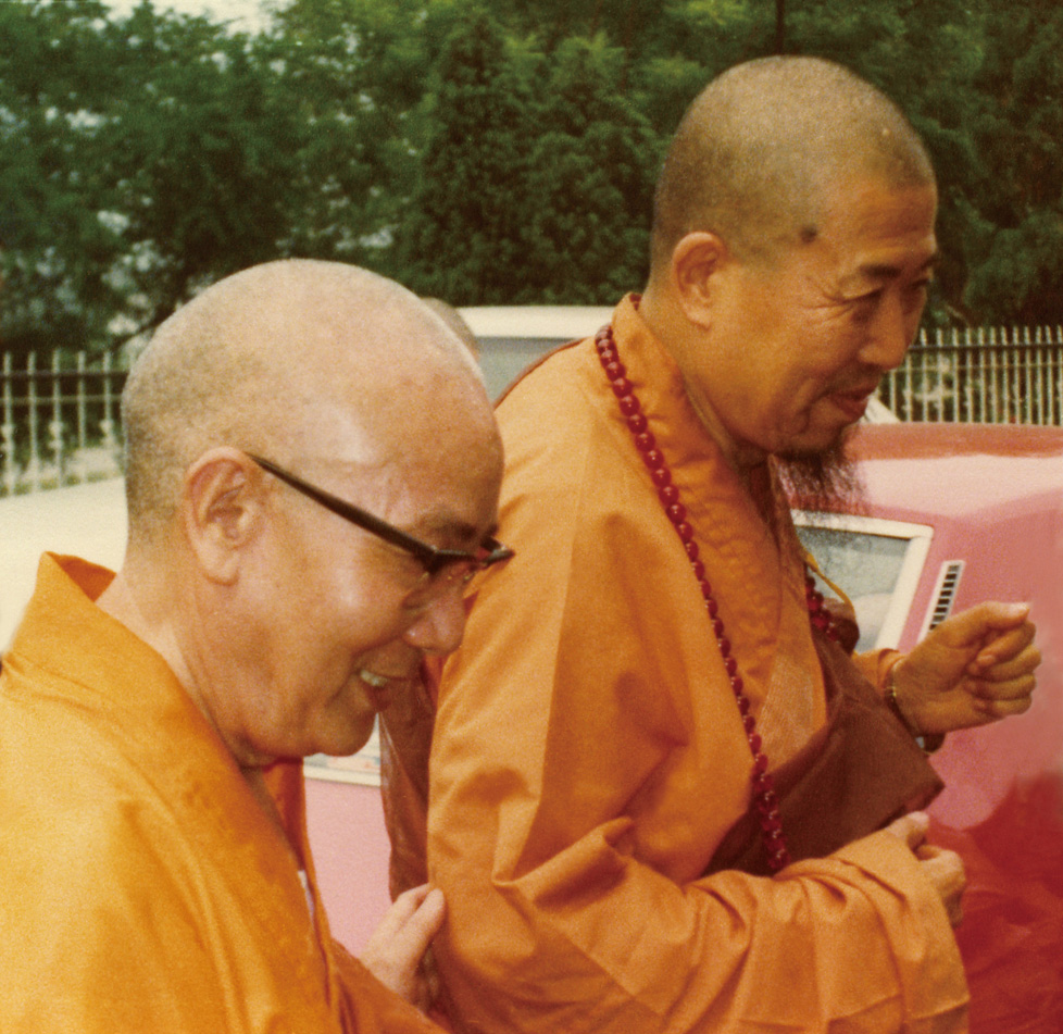 佛教總會主席金明法師 (左) 與上人清談 青雲亭
